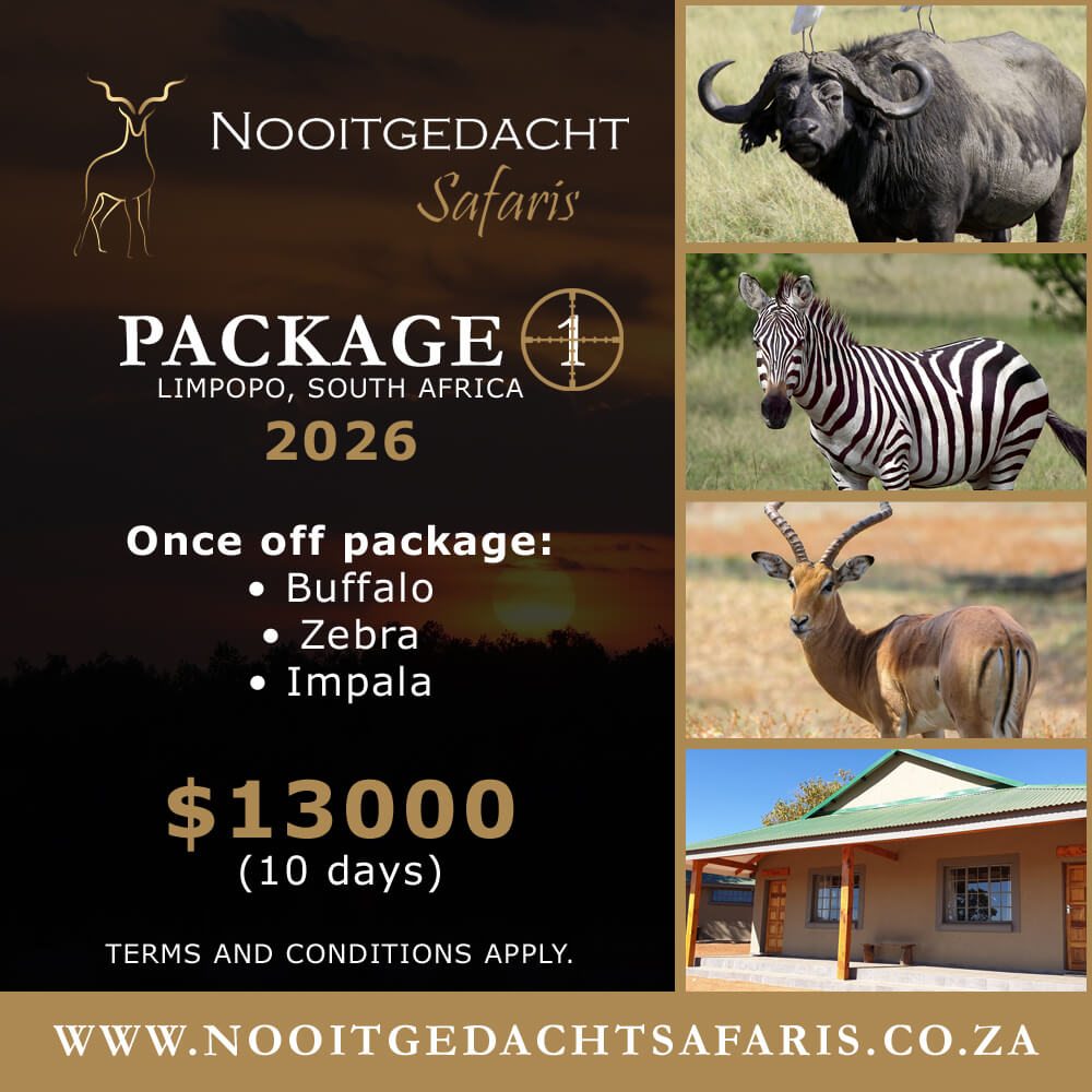 - All our packages are for 1 x Hunter and includes accommodation, meals and non-alcoholic beverages.